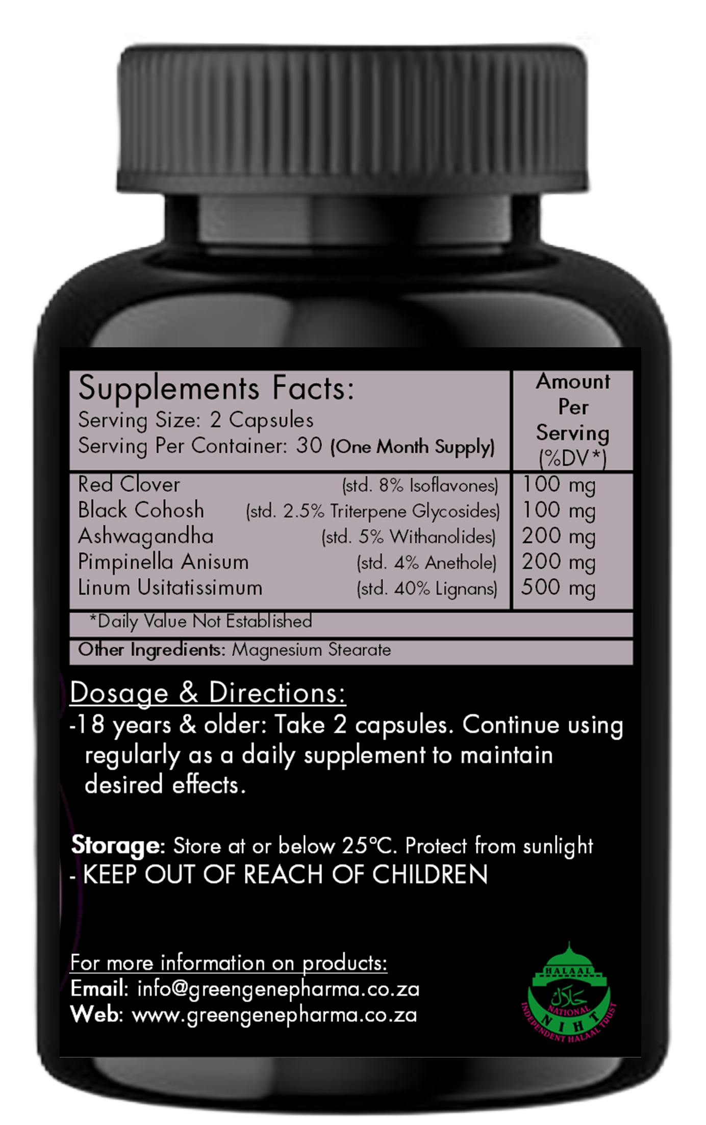 🌿 Red Clover (100 mg) – a plant-based estrogen that helps balance hormones, ease menopause symptoms, and strengthen bones.